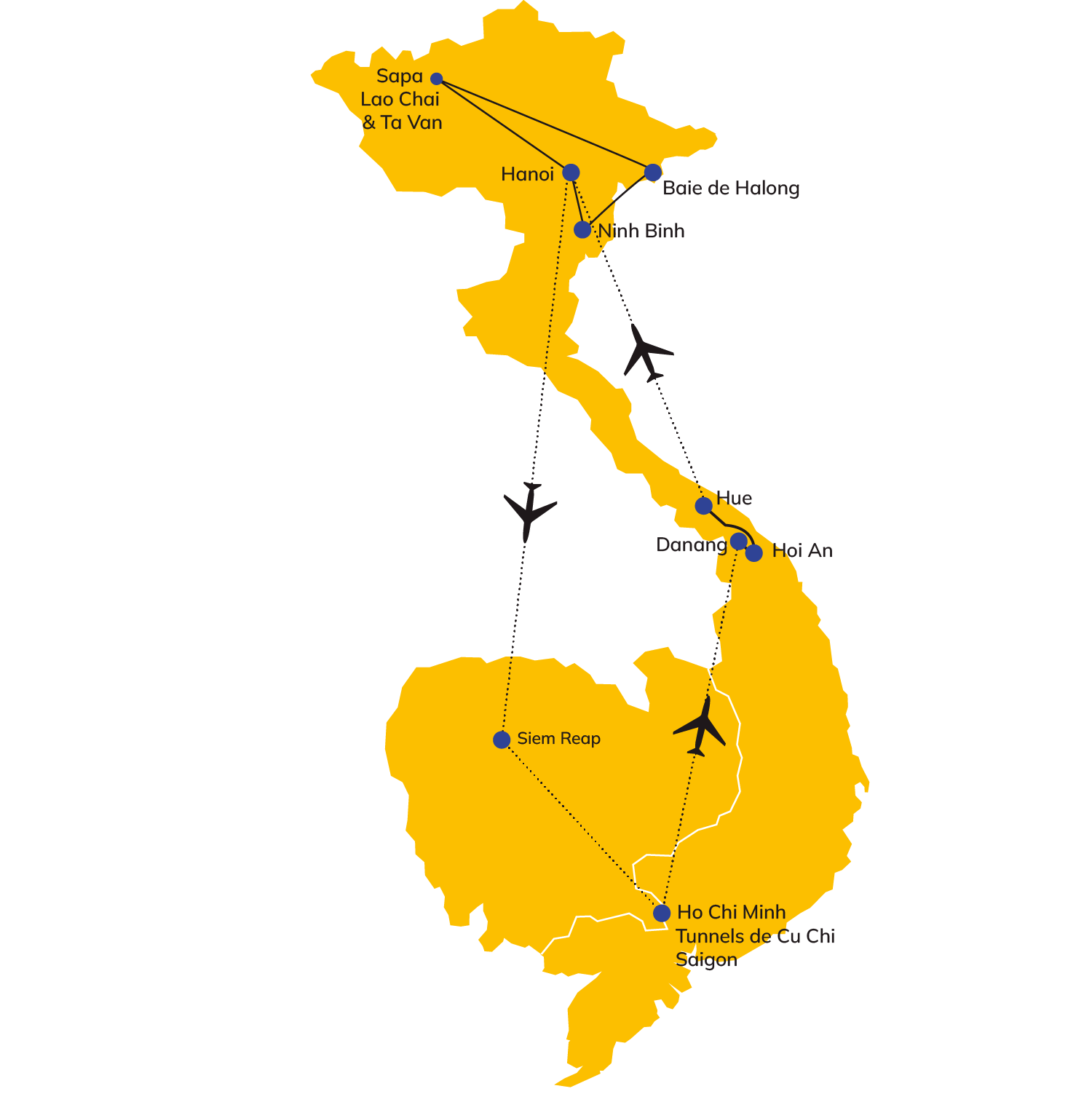 Ce circuit Vietnam Cambodge est accompagné de Montréal par une accompagnatrice chevronnée, passionnée par l’Asie. Elle vous accompagnera depuis le Québec pour assurer un service personnalisé, une ambiance conviviale et un soutien constant tout au long du séjour. Une valeur ajoutée incomparable !